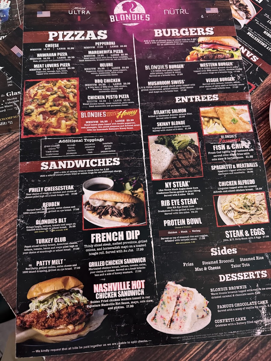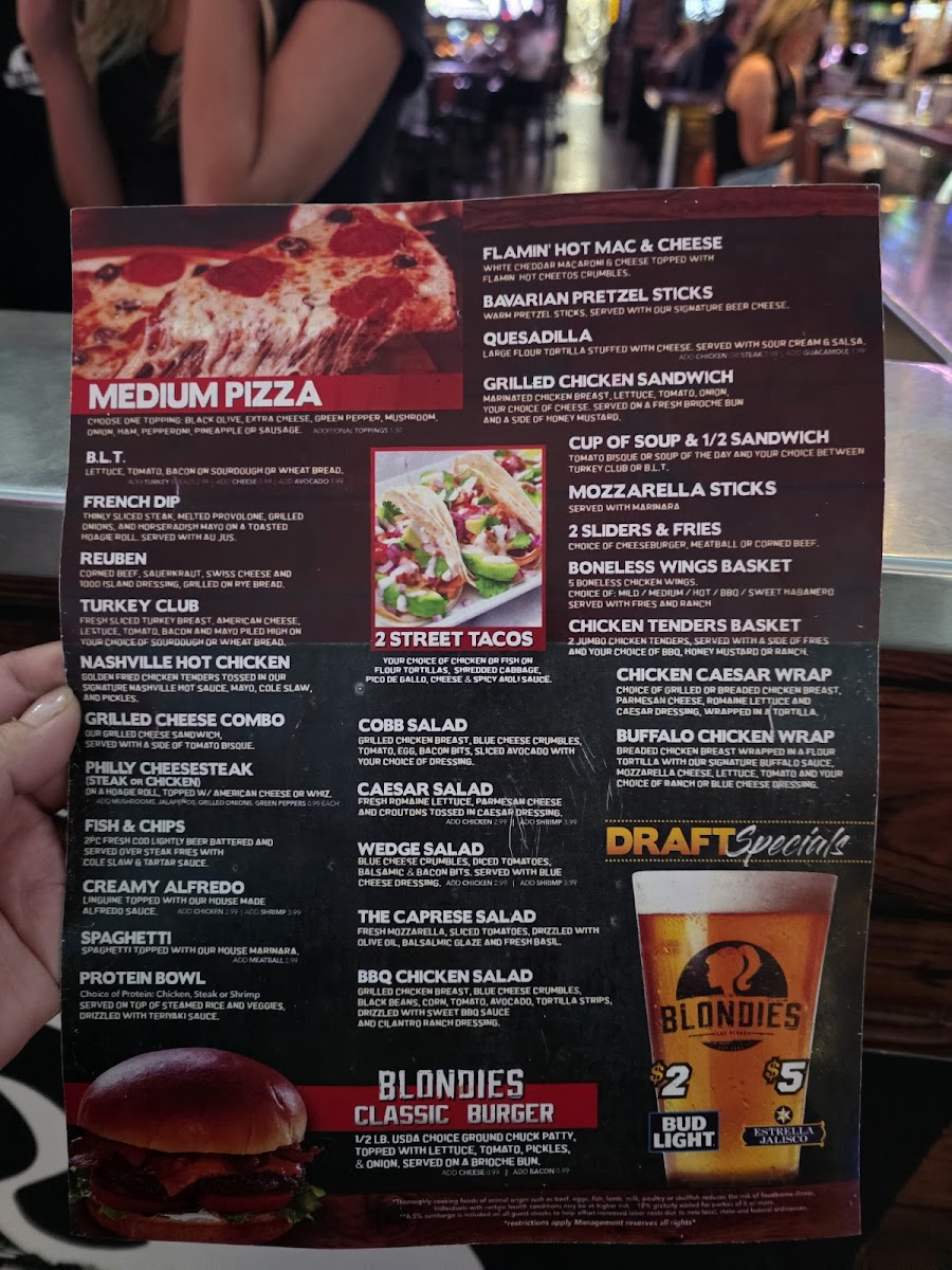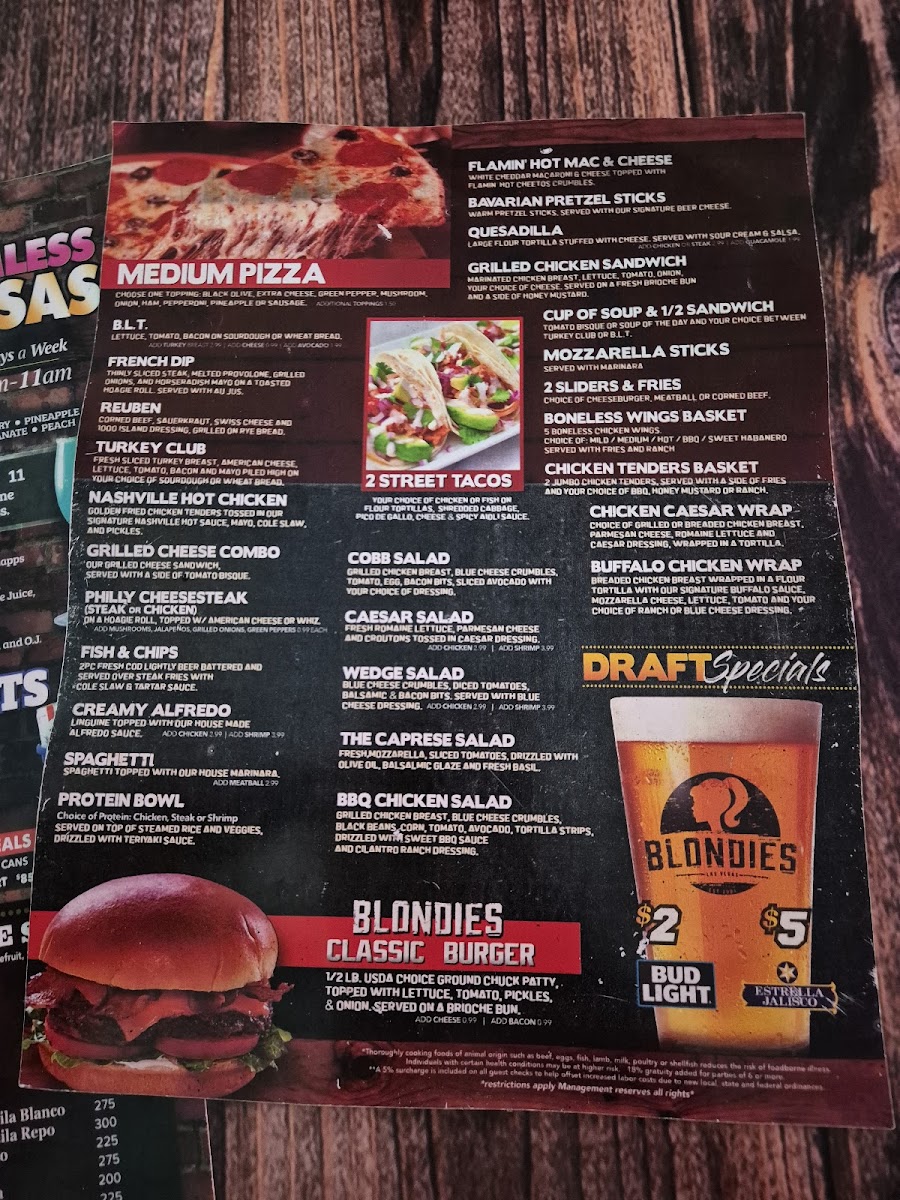 Blondies Sports Bar & Grill Menu