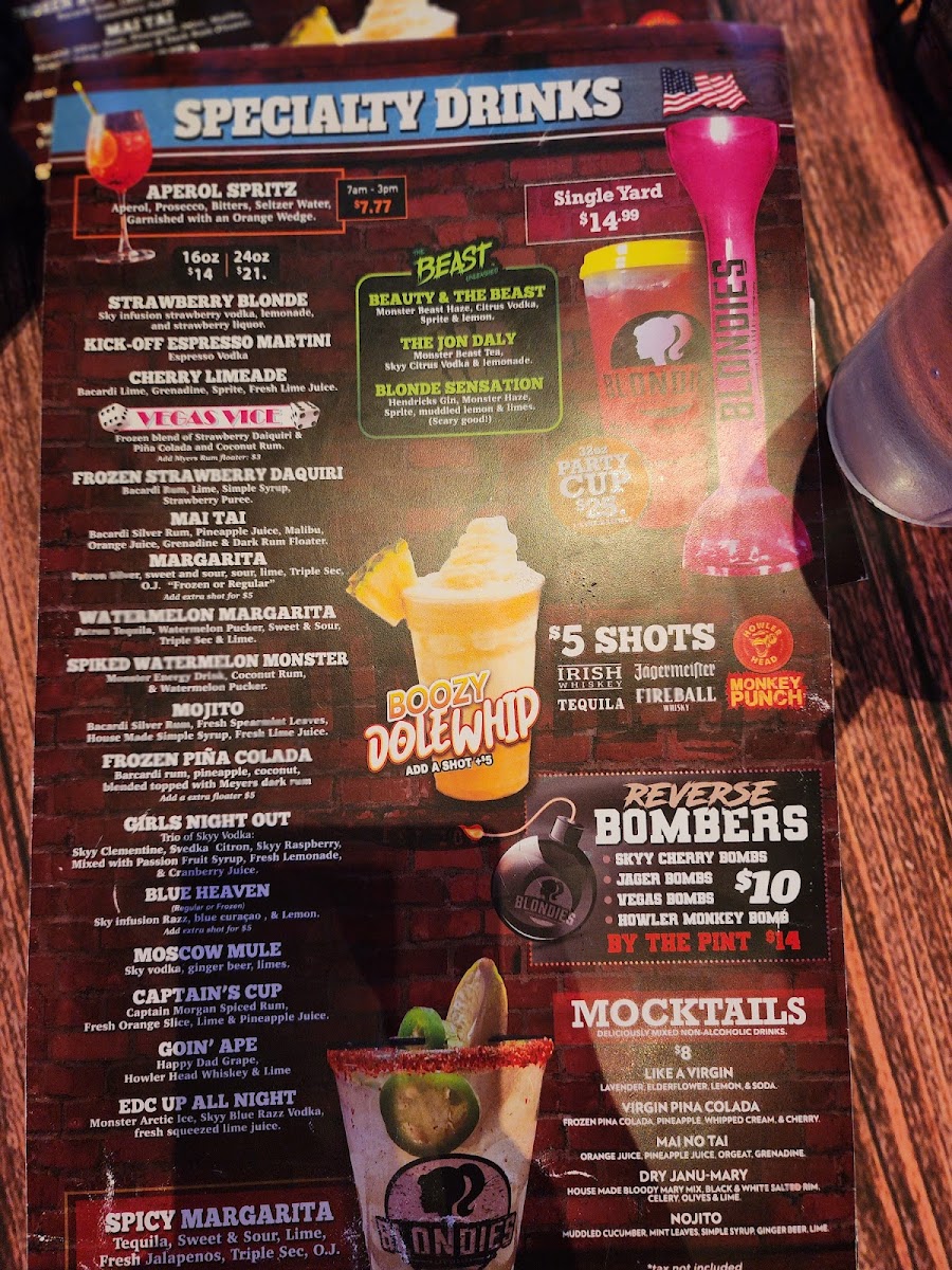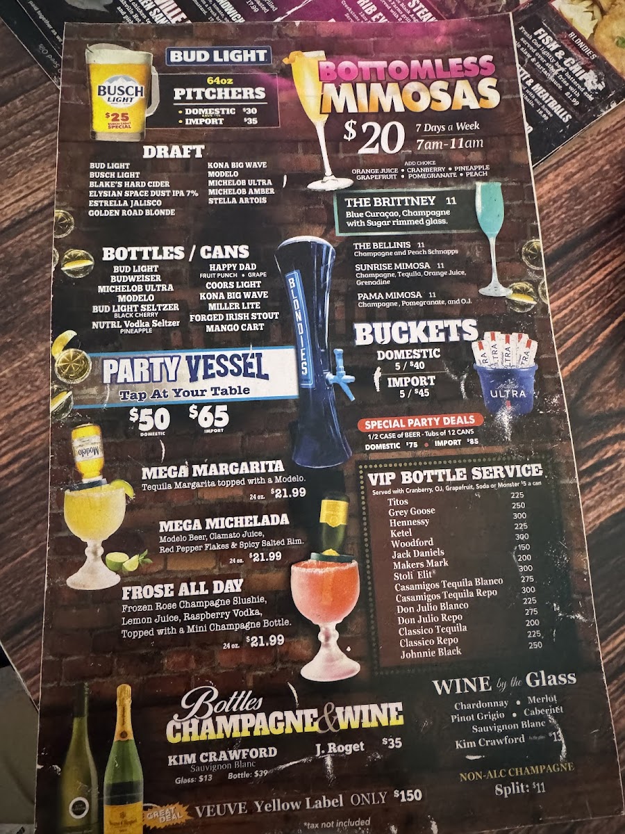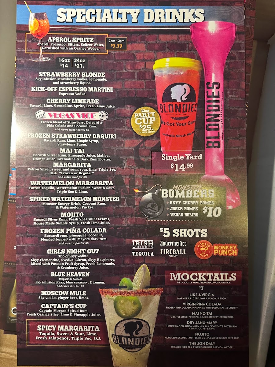 Blondies Sports Bar & Grill Menu